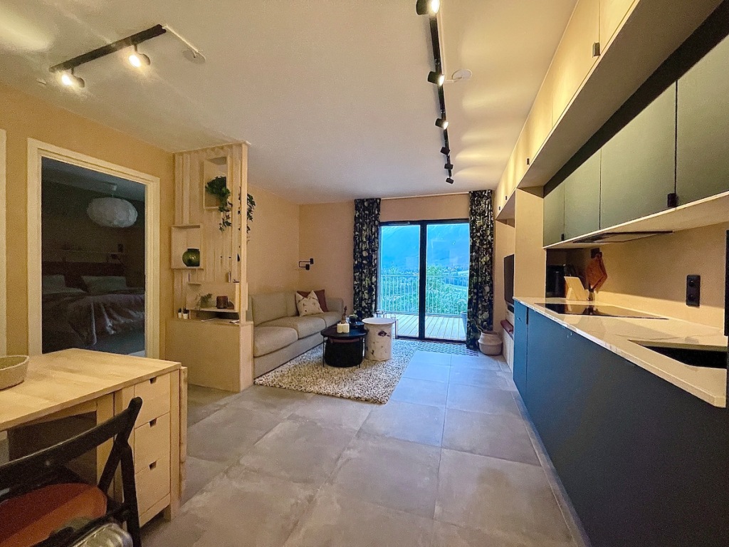 L’espace de vie comprend une cuisine entièrement équipée avec coin repas, ainsi qu’un salon ouvrant sur un balcon de 16 m², aménagé avec table à manger et salon d’extérieur. La vue sur le massif du Mont-Blanc y est tout simplement spectaculaire. La cuisine entièrement équipée comprend tout ce dont vous avez besoin pour des repas, également un appareil à fondue et un appareil à raclette.
