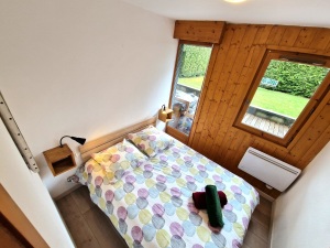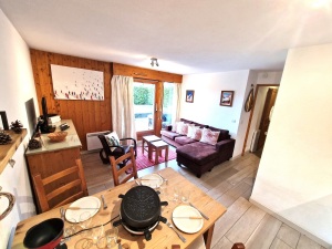 Appartement de 42 m2, 2 chambres, en RDC, très bien équipé. Il possède une grande terrasse et un jardin privatif avec vue sur le Brévent et Flégère.
