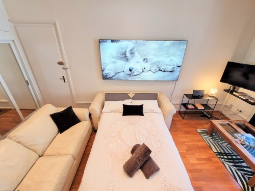 Wi-Fi, cuisine équipée, machine à laver/sèche linge, chambre avec lit king size, "walk-in closet", agréable salon avec télé et une vue imprenable sur le Brévent. Tous les commodités ( restaurants, supermarchés, boutiques ) sont à mois de 300 mètres. A l'arrivée, une caution de 300 EUR en espèces est demandée. La caution est rendue au départ si tout en ordre dans l'appartement.