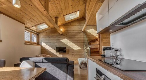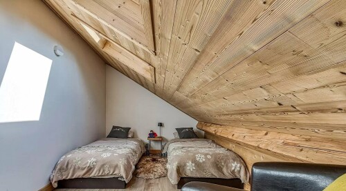 Cuisine entièrement équipée de haute qualité, deux lits simples et un canapé-lit.