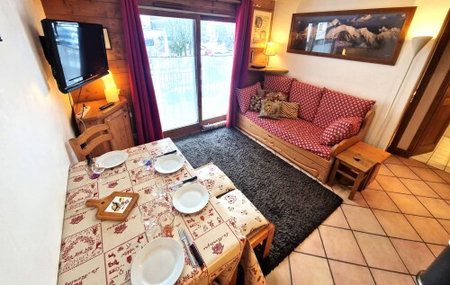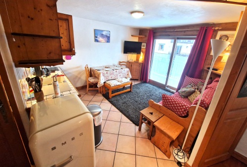L’appartement est situé dans la résidence LA GINABELLE 2 - LA SAPAUDIA, au premier étage avec une vue magnifique sur le Mont Blanc. Appartement de 40m2 idéal pour un couple ou une famille de 4 personnes. Il se compose d’une grande cuisine ouverte sur le séjour, d’une chambre avec un lit double, d’une chambre avec un lit superposé, d’une salle de bain avec baignoire et toilettes.